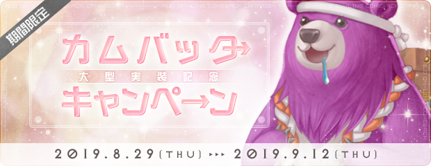 更に今回は期限付きの機甲・乗り物アイテムの「かむばっくま」「ComebaCuckoo」の
