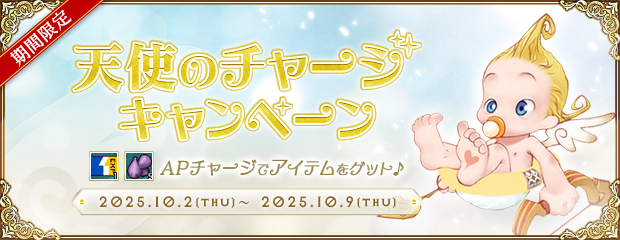APにチャージすると「ペット経験2倍カード(1日)」1枚と「天使の種」5個と「巻物(30日)」を1度のみプレゼント!