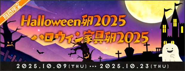 その他、魔女をイメージした家具アイテムの「ハロウィン家具卵2025」と去年に販売を行った「ハロウィン家具卵2024」もご用意しましたので、