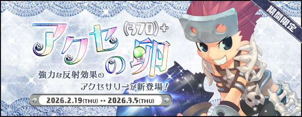 ランダムにアイテムを手に入れることができる。 ※大当たりは黄色文字のアクセサリーアイテムです。 装備にはレベル310が必要です。 ※トレード・バザー不可